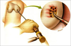 Όταν ο αρθρικός χόνδρος αποτυγχάνει να θεραπευθεί αυτόματα, υπάρχουν διάφορες χειρουργικές επιλογές.Η πιο διαδεδομένη και μία από τις πιο επιτυχημένες επιλογές είναι χονδροπλαστική ή τεχνική μικροκαταγμάτων Steadman. Αυτή περιλαμβάνει τον αρθροσκοπικό καθαρισμό της βλάβης για να βεβαιωθεί ο χειρουργός ότι το εκτεθειμένο οστό είναι φρέσκο, χωρίς την επένδυσή του από ουλώδη ιστό. Στη συνέχεια εντός του οστού γίνονται πολλαπλές μικρές οπές, η οποίες επιτρέπουν μυελό των οστών και αίμα να διαφύγει από το οστό και να εισέλθει στο γόνατο.