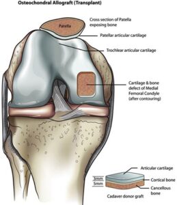 Περαιτέρω επιλογές για την πλήρωση των ελλειμμάτων είναι τη συγκομιδή χόνδρινων κυττάρων απο τον αρθρικό χόνδρυ τα οποία στη συνέχεια αποστέλλονται σε ένα εργαστήριο για να αναπτυχθεί ένα φύλλο χόνδρου που μπορεί να εισαχθεί εκ νέου στο γόνατο μετά από έξι εβδομάδες.