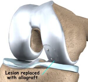 Μια άλλη διαθεσιμη επιλογή είναι η εισαγωγή ενός έτοιμου πλέγματος στην θέση του ελλείμματος πάνω στο οποίο ο οργανισμός εναποθέτει χονδροκύτταρα σχηματίζοντας έτσι ένα βύσμα από αρθρικό χόνδρο. Σε περίπτωση που οι διάφορες βιολογικές επιλογές αποτύχουν υπάρχουν διάφορες μη-βιολογικές επιλογές οι οποίες περιλαμβάνουν την χρήση ενός μεταλλικού καλύμματος (Hemicap από Arthrosurface).